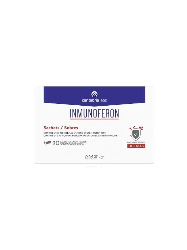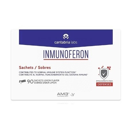 INMUNOFERON es un complemento alimenticio con una fórmula exclusiva a base de AM3® (alfa glucomanano fosforilado y proteína de soja), tecnología patentada por Cantabria Labs, y zinc, ingrediente que contribuye al normal funcionamiento del sistema inmune.