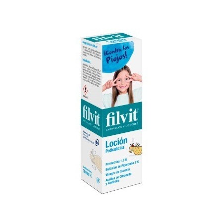 1. Aplicar Filvit® Loción Permetrina sobre el cabello seco con un suave masaje y mantener aplicado durante 10 minutos