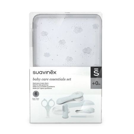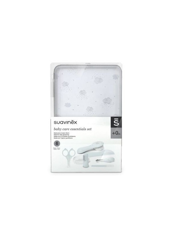 Set de manicura de suavinex con 8 productos esenciales, ¡todo lo necesario para la hora del baño! neceser rígido e impermeable, con cierre de cremallera. Muy práctico para transportar todos los accesorios para el aseo del bebé bien ordenados este pack incluye: neceser manicura con 6 productos para el cuidado del bebé. Termómetro de bañera. Esponja para recién nacido. Incluye: cepillo-peine: cepillo de fibras pobladas y muy suaves. Cepillo dental: cepillo de dedal de silicona. Pensado para introducir el dedo y limpiar suavemente las encías y primeros dientes del bebé. Tijeritas: de reducido tamaño y punta redondeada. Lima: específica para uñas finas y frágiles. Cortauñas: diseño ergonómico para manejar con precisión con una sola mano. Termómetro de bañera: sin mercurio. Esponja canastilla: de tamaño pequeño para los primeros días de vida.