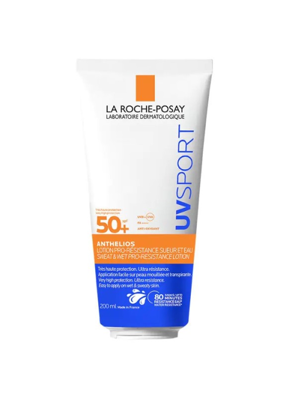 Loción resistente al sudor y la humedad spf50+ de la roche posay ofrece una protección uv muy alta formulada para resistir incluso actividades de alta intensidad. Está enriquecida con vitamina e, glicerina y agua termal de la roche-posay. La combinación de estos activos dermatológicos hidrata la piel, protege contra el estrés oxidativo gracias a sus propiedades antioxidantes y preserva la barrera cutánea. Y gracias a la tecnología wetskin, permite aplicar el producto incluso sobre la piel húmeda o con sudor. 16 horas de acción antioxidante y 24 horas de hidratación. Protege la piel de las molestias causadas por la deshidratación de la sal y el cloro. Hipoalergénica, dermatológicamente testada y de alta tolerancia en pieles sensibles.