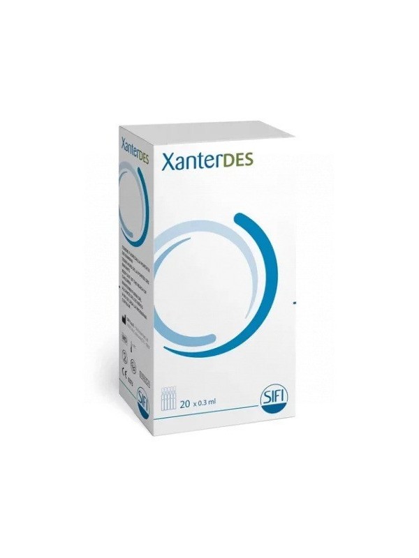 Xanterdes es un colirio o solución oftálmica en monodosis que se utiliza para aliviar la irritación ocular, el picor, la rojez y la sequedad, y para favorecer la reepitelización de la superficie ocular, especialmente tras traumatismos. Su fórmula contiene goma xantana, que hidrata y protege la córnea, y desonida fosfonato de sodio, un corticosteroide que reduce la inflamació