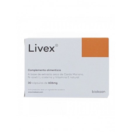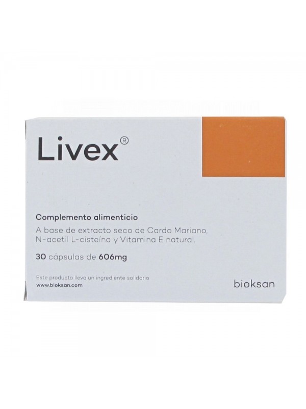 Livex® es un complemento alimenticio a base de extracto seco de Cardo Mariano, N-acetil L-cisteína y Vitamina E natural, diseñado para acompañar el cuidado de las funciones depurativas y detoxificantes del organismo donde el hígado juega un papel fundamental.