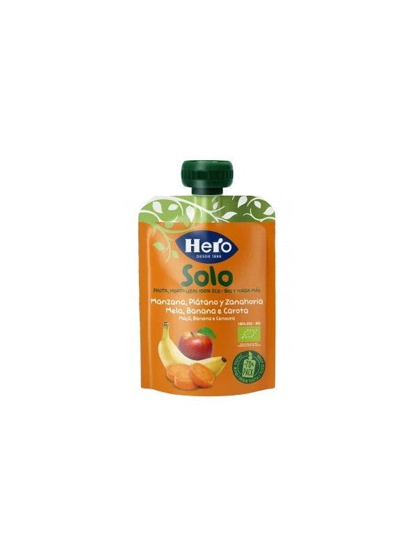 Las bolsitas de manzana, plátano y zanahoria de Hero Solo están elaboradas con ingredientes 100% ecológicos para bebés a partir de 4 meses. Disfruta de estas deliciosas combinaciones de fruta y hortalizas ecológicas para tomar en cualquier lugar gracias a su práctico envase que no necesita frío.