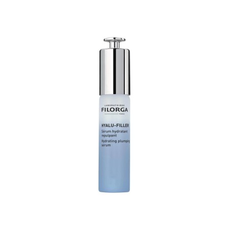 El sérum hyalu-filler de la firma filorga es un tratamiento antiedad intensivo inspirado en las técnicas de medicina estética que utilizan ácido hialurónico — tanto “skinboosters” como rellenos dérmicos. Su fórmula principal integra cinco tipos diferentes de ácido hialurónico (alto, medio y bajo peso molecular, reticulado y microfragmentado) para penetrar a distintos niveles de la piel, rellenar arrugas y líneas finas, e hidratar en profundidad. Además de estos ácidos hialurónicos, incorpora extracto de alga roja (chondrus crispus) con acción antipolución, y extracto de flor de sophora japonica rico en polifenoles antioxidantes, reforzando la defensa de la piel frente a agresiones externas. La textura es tipo gel, ligera y de rápida absorción, con acabado suave y no pegajoso, está formulada para todo tipo de piel. En pruebas instrumentales, se observó un aumento del 80 % en la hidratación a los 30 minutos de uso y un incremento del 58 % en los niveles de ácido hialurónico en la piel tras 7 días de aplicación. Este sérum está especialmente recomendado para personas que desean mejorar la hidratación, rellenar volumen perdido, atenuar arrugas y mejorar la textura de la piel con un producto de alta eficacia cosmética. Se aplica idealmente mañana y noche sobre piel limpia del rostro y cuello, con 2-3 gotas y masajeando suavemente hasta su absorción.