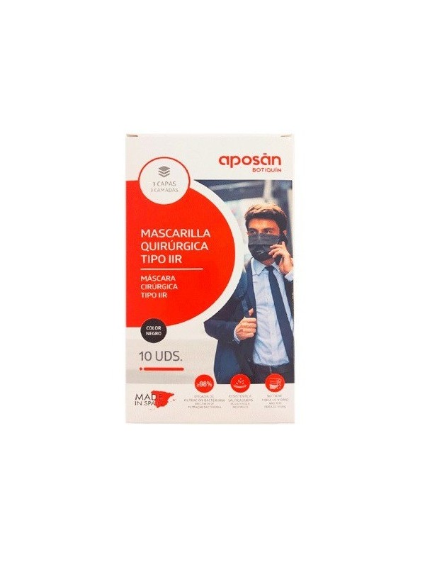 Aposán Mascarilla Quirúrgica Tipo IIR Color Negro 10uds