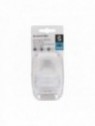 Tetina de silicona fisiológica de flujo denso para niños mayores de 0 meses. Sistema anticólico. MODO DE EMPLEO - No se aconseja emplear técnicas de esterilización diferentes a las recomendadas por el fabricante. - Es importante dejar secar las tetinas antes de guardarlas. PRECAUCIONES Y ADVERTENCIAS - Inspeccionar cuidadosa y periódicamente la tetina para detectar posibles daños, especialmente cuando el niño tiene dientes. Desechar la tetina a los primeros síntomas de deterioro o fragilidad. - No exponer la tetina a la luz solar directa o a una fuente de calor, ni en contacto con un desinfectante durante más tiempo del recomendado por el fabricante, en su caso, puesto que esto podría dañar la tetina. - No introducir la tetina en sustancias dulces, ni medicamentos.